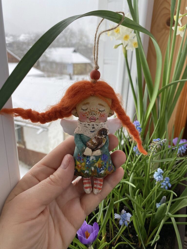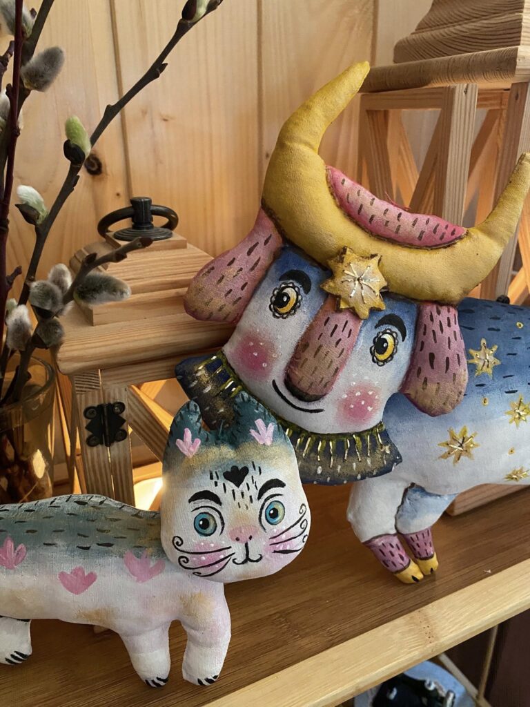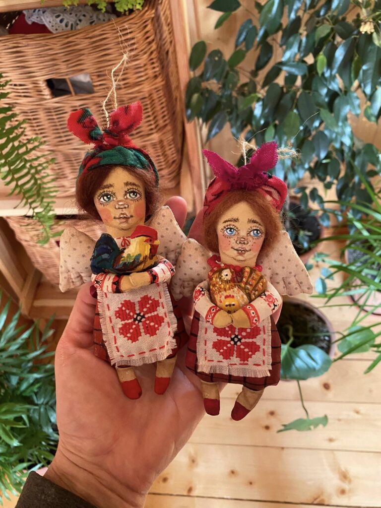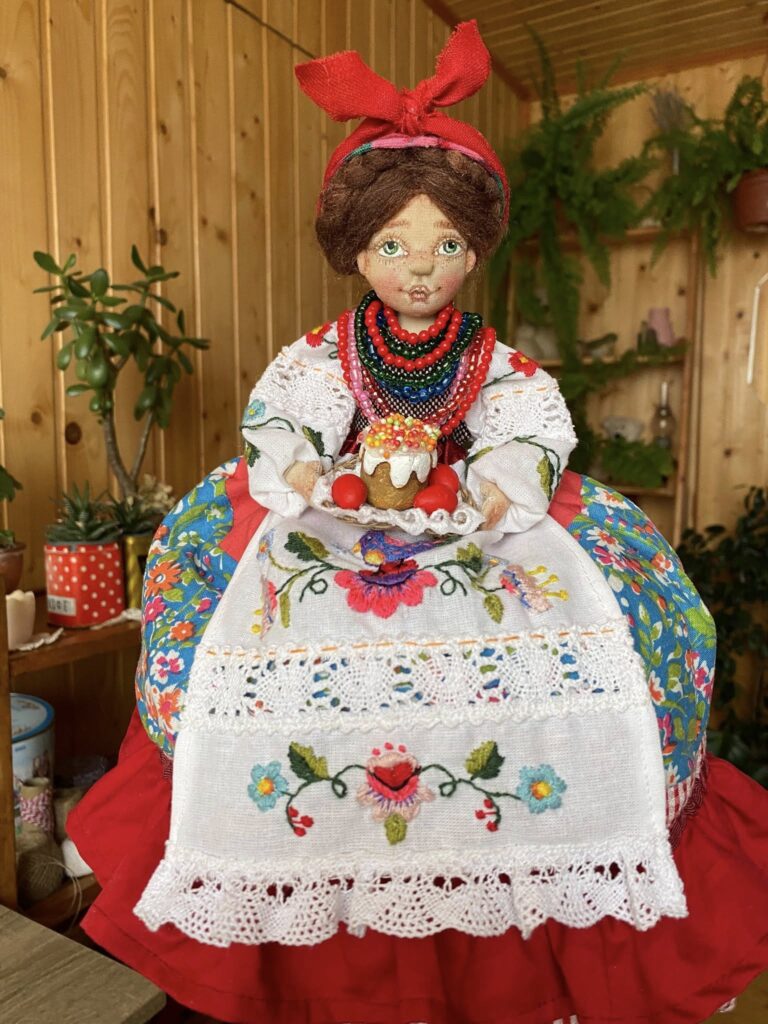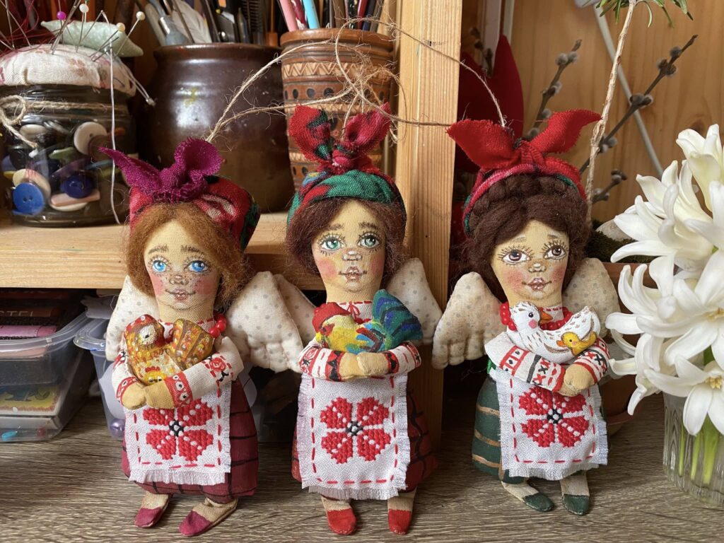 “Коли почалося вторгнення, я думала — все, творчості кінець, бо кому потрібні ляльки? У мене була замовлена робота, 24 лютого ми з клієнткою з Києва плакали по відеозв’язку, вона втекла і ляльку не забрала… Але з часом виявилося, що потреба у таких речах є, до того ж українська тема стала потрібною як ніколи. Люди замовляють ляльок у віночках, вишиванках, іграшки за мотивами Примаченко. Вони хочуть мати щось рідне”, — каже майстриня.