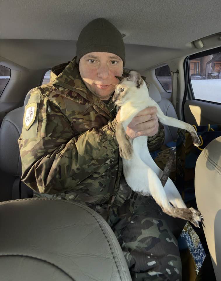 Свого слова поліцейські дотрималися. Під час однієї з наступних евакуацій цивільних із зони активних бойових дій екіпаж знову заїхав за вказаною адресою. Попри постійну загрозу, тваринку вдалося знайти та забрати.