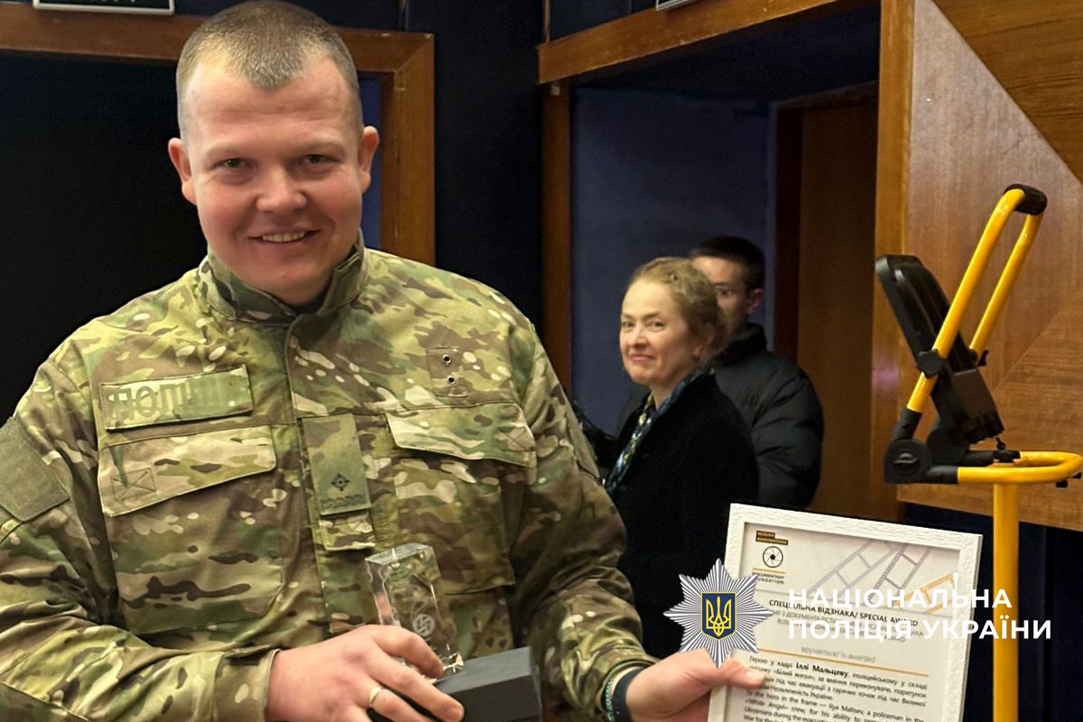 Поліцейський екіпажу “Білий янгол” Ілля Мальцев став лауреатом спеціальної відзнаки Премії з документалістики імені Руслана Ганущака — “Кришталева лінза”.