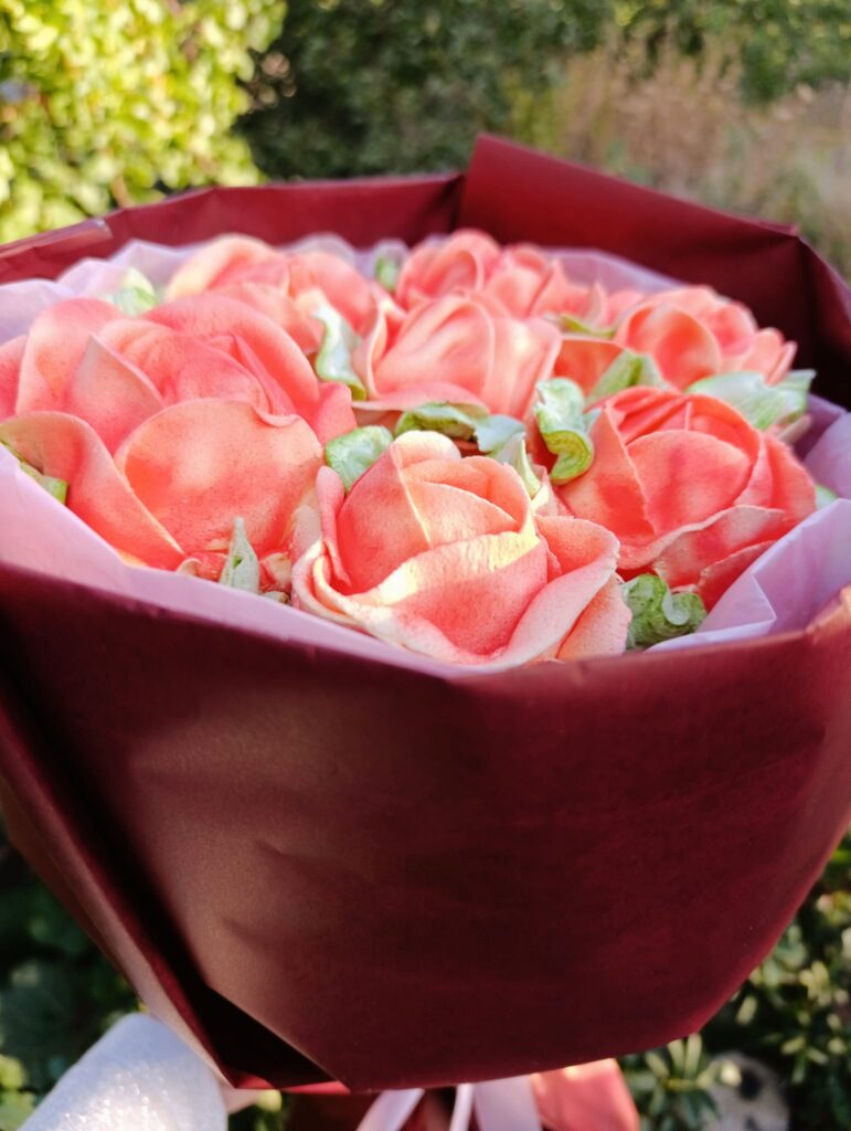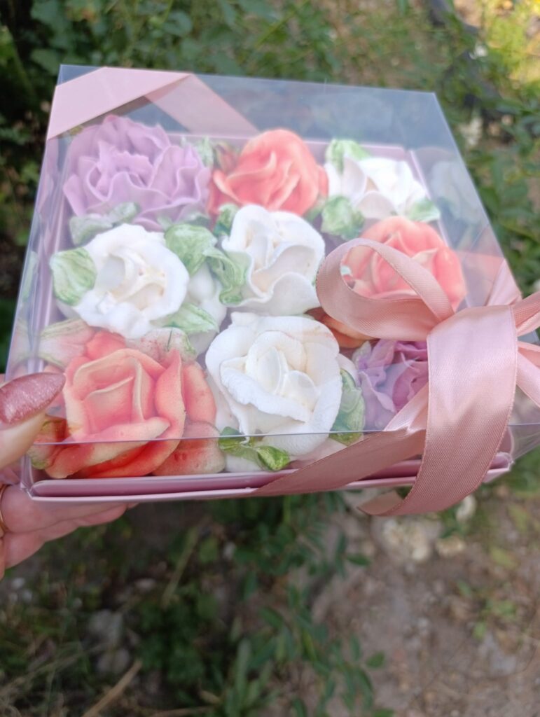 “Я навіть не думала, що це може стати заробітком, що можна буде створювати ці букети чи коробки на замовлення й жити за ці кошти. Зробила перший букет і милувалася на кухні. Аж тут прийшов син разом зі своїм другом і той одразу запропонував купити. Здивувалася? Так. Але саме це наштовхнуло на думку, що треба продовжувати навчатися, вдосконалювати техніку, експериментувати та продовжувати”, — згадує майстриня.