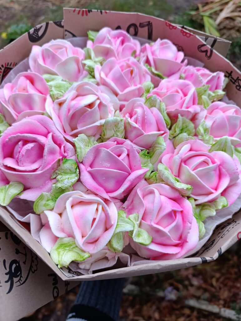 Олена переконана, що у зефірній флористиці, як і в аналізі міцності бетону, важлива кожна дрібниця — від температури сиропу до сили збивання білка. Майстриня використовує лише натуральні інгредієнти та харчові барвники. Вона настільки впевнена у якості, що спокійно дає ці ласощі своєму дворічному онуку. Навіть у прифронтовому місті вона знаходить можливість замовляти все необхідне через інтернет, аби не знижувати планку.