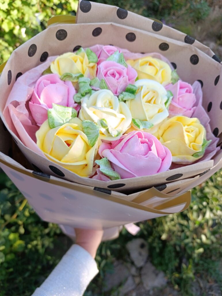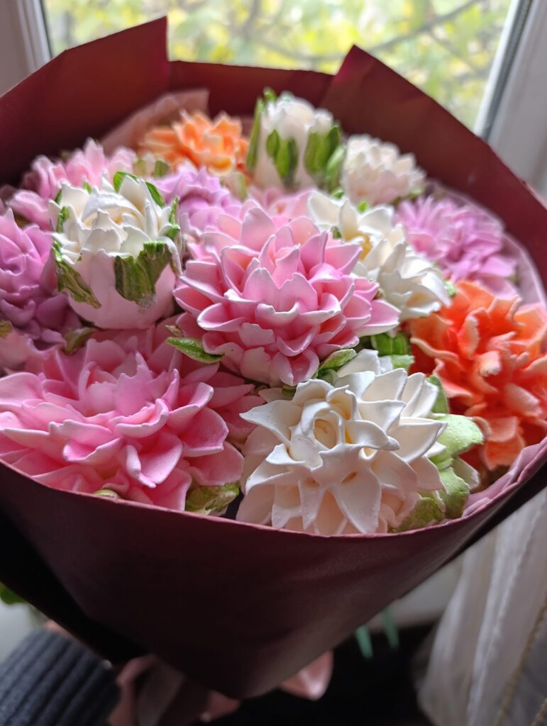 Наразі її солодкі композиції — троянди, півонії, хризантеми та бузок — уже подорожували до Польщі, Німеччини та Туреччини як “привіт з дому” для українців.