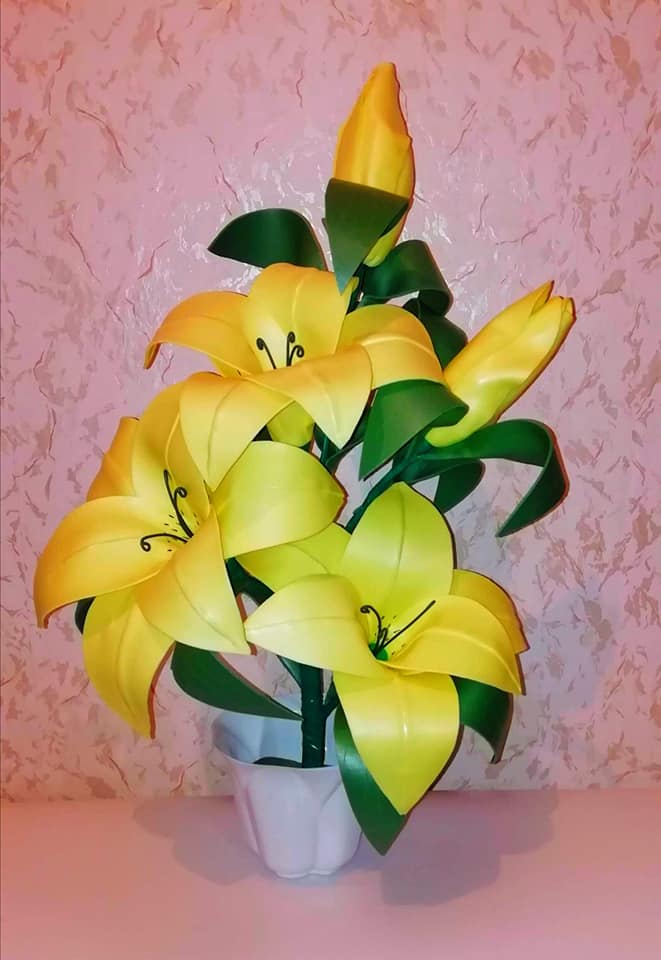 “Це була дуже кропітка робота, бо потрібно було зробити кожен листик окремо, потім зібрати до купи, створити світильник чи торшер. Мені було це цікаво, але з часом я відчула, що “перегоріла”, — згадує вона.
