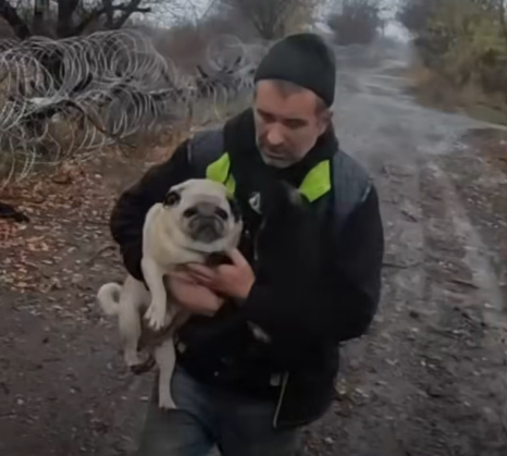 Чоловік зі сльозами віддав своїх мопсів, щоб евакуюватися самому. Без них виїжджати не погоджувався.